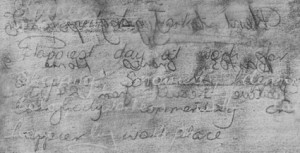 Determining the relative age of a document, or various entries on documents can be valuable evidence, remembering that every document is unique and presenting its own set of circumstances. This image shows the result of a technique (ESDA) where indented writings (black) intersect with original ink handwritng (clear/white). The sequence determination of the handwriting relative to the indentations is possible.